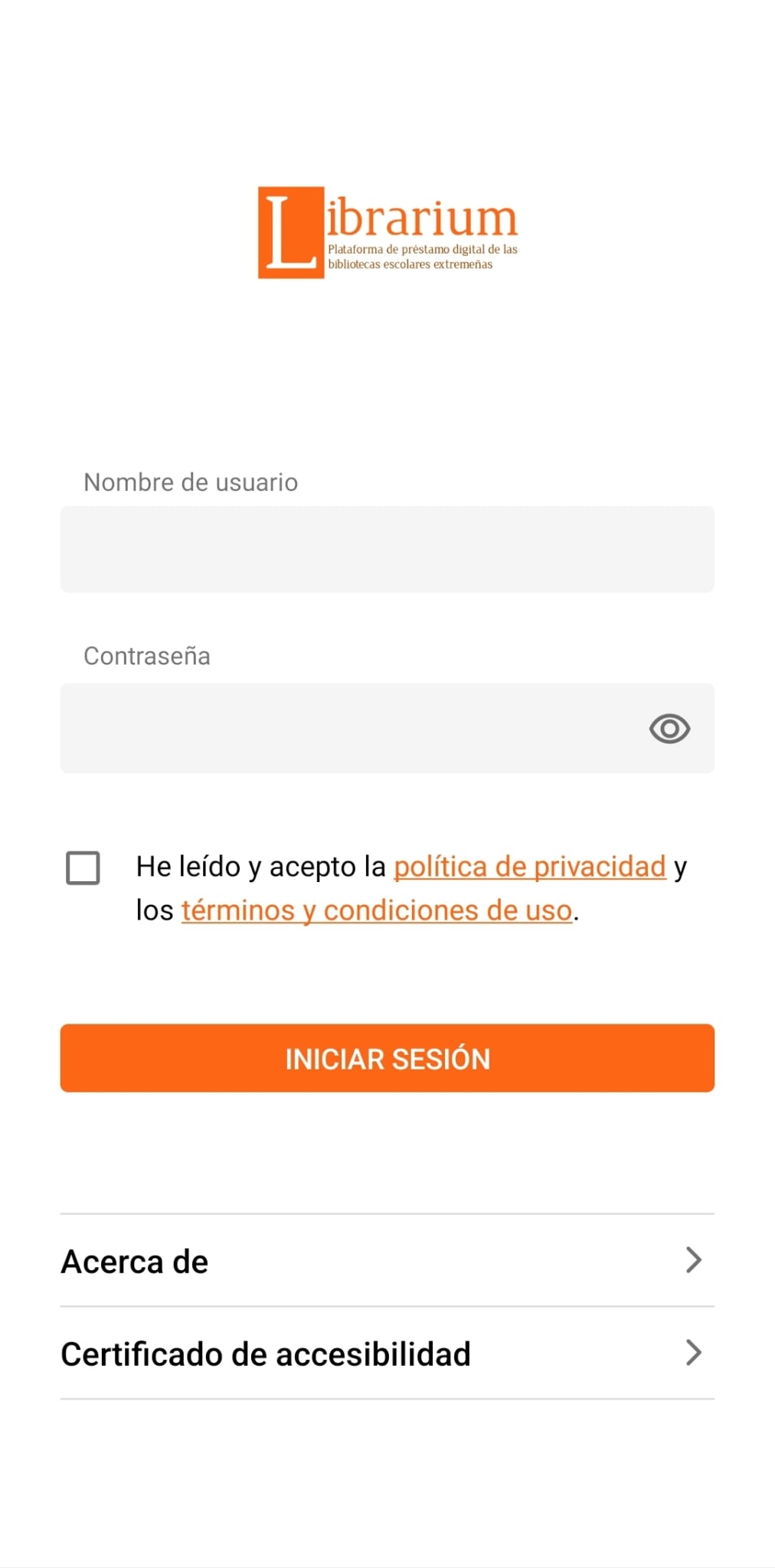 3. Pulse el botón Iniciar sesión. Tras unos segundos se abrirá la app LIBRARIUM.