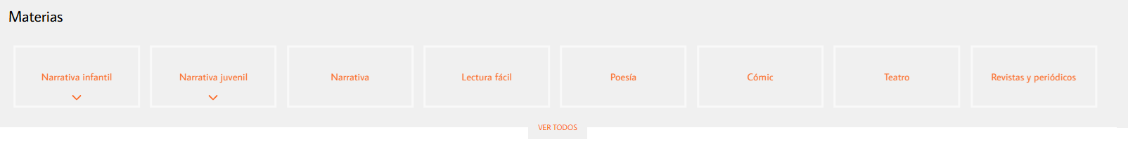 Puede ver la lista completa de materias pulsando el botón VER TODOS, que se encuentra en la parte inferior del panel de materias. En este listado también puede acceder a las publicaciones de un materia haciendo clic sobre su nombre.